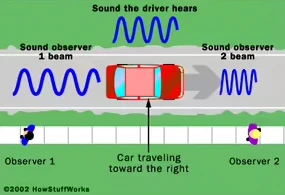 در همین حال، فیزیکدان اتریشی، کریستین دوپلر (Christian Doppler)، کشف کرد که فرکانس یک موج صوتی به موقعیت نسبی منبع صدا بستگی دارد. هنگامی که یک شیء پر سر و صدا به شما نزدیک می‌شود، امواج صوتی تولید شده توسط آن فشرده می‌شوند. این کار فرکانس صدا را تغییر می‌دهد و بنابراین شما صدا را به صورت یک زیر و بم (pitch) متفاوت درک می‌کنید. وقتی شیء از شما دور می‌شود، امواج صوتی کشیده می‌شوند و زیر و بم صدا پایین می‌آید. این پدیده اثر دوپلر (Doppler effect) نامیده می‌شود.