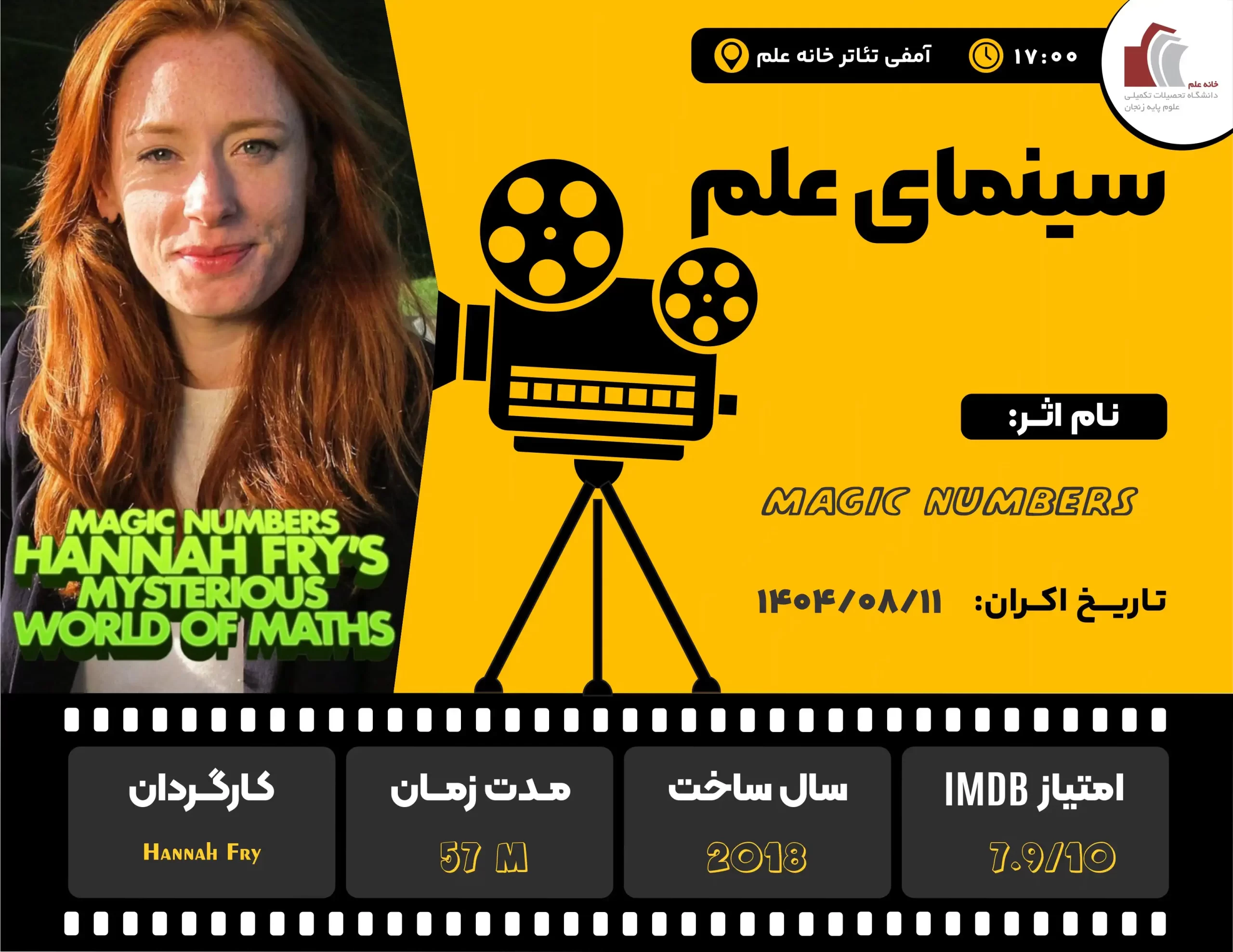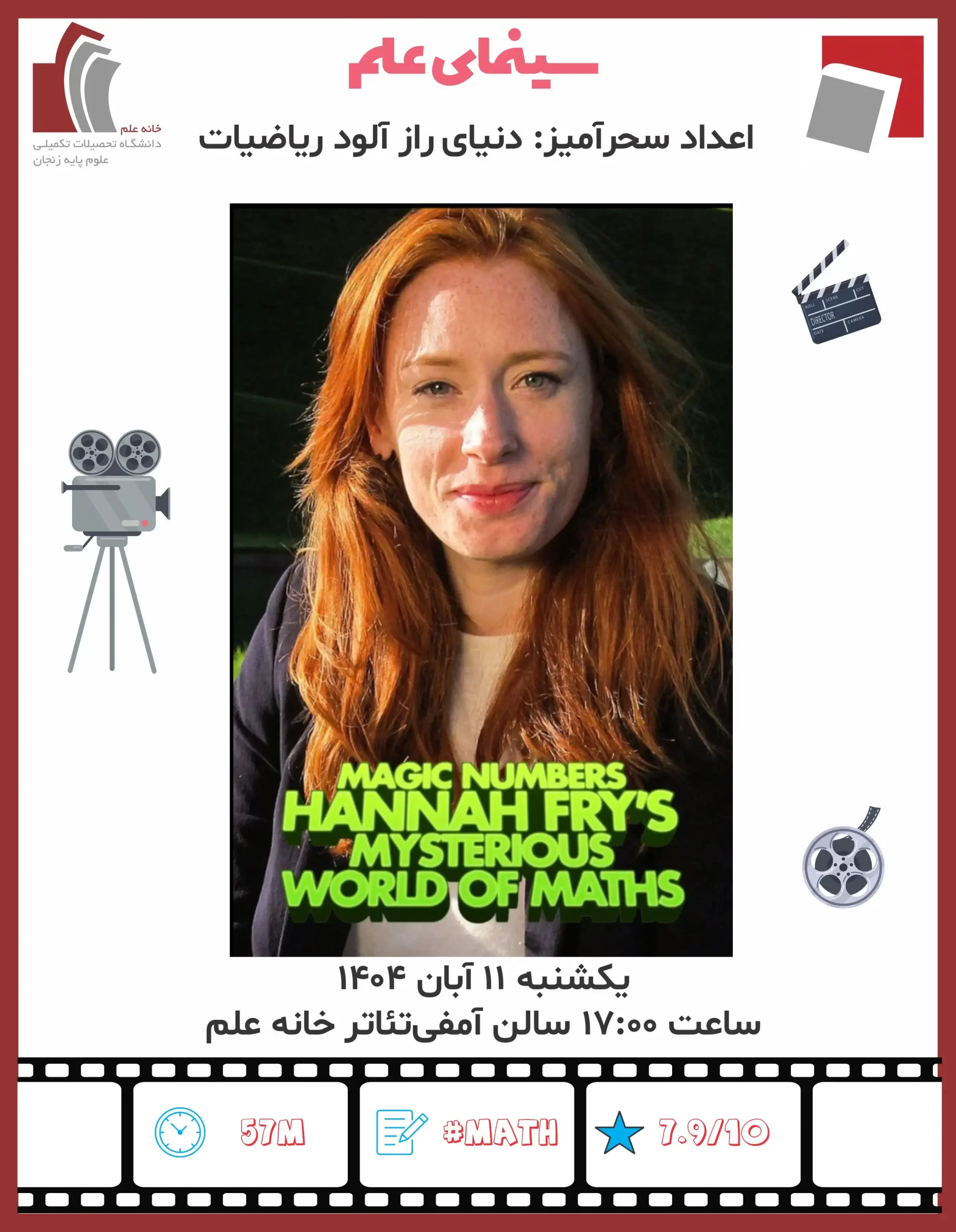 این هفته در «سینمای علم» به تماشای فیلم مستند «اعداد جادویی: دنیای اسرارآمیز ریاضیات با هانا فرای» خواهیم نشست. از همه اعضای محترم دانشگاه، بویژه دانشجویان عزیز، دعوت میشود در این اکران حضور داشته باشند.